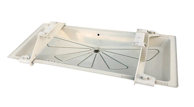 – Bandeja de drenaje de condensados BLUE RIVER SCD300030 de Tecnosystemi, diseñada para su instalación debajo de las unidades exteriores de aire acondicionado y bombas de calor, lo que garantiza una gestión controlada y eficiente del condensado.