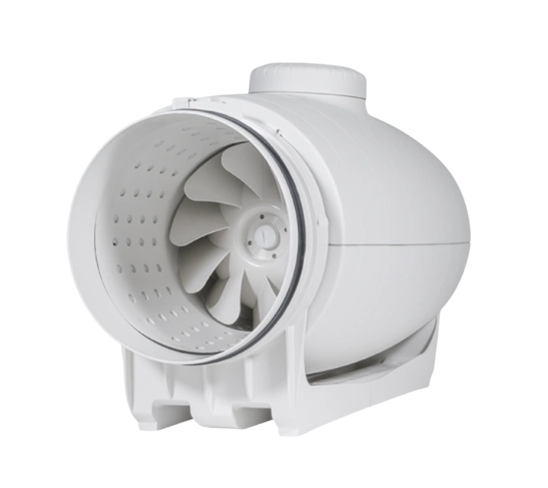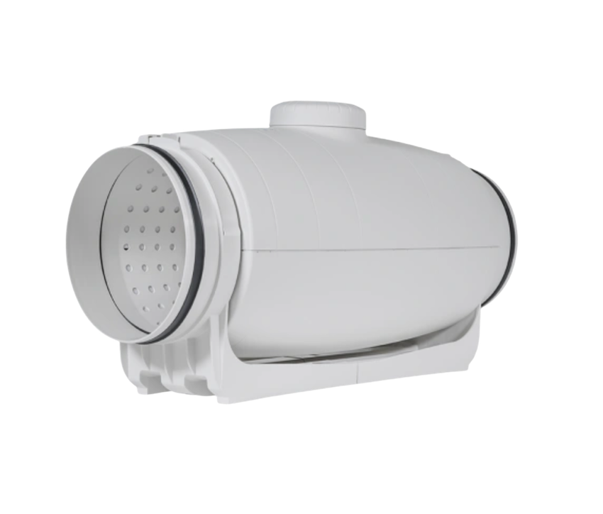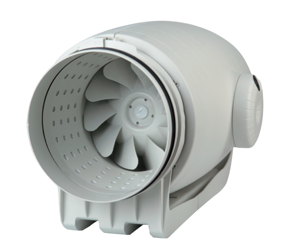 – Manufactured from high-grade, impact-resistant plastic, this inline duct fan incorporates a specially engineered internal skin that guides sound waves to the correct angle for absorption by the sound-insulating material. The result is a low noise level between 22 and 28 dB(A), making it one of the quietest mixed-flow fans available.